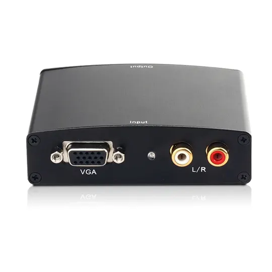 Este convertidor de VGA a HDMI puede convertir la entrada VGA en HDMI para permitir a los usuarios de PC mostrar su imagen no sólo en el monitor de la PC, sino que también podría en la televisión junto con el audio R / L.