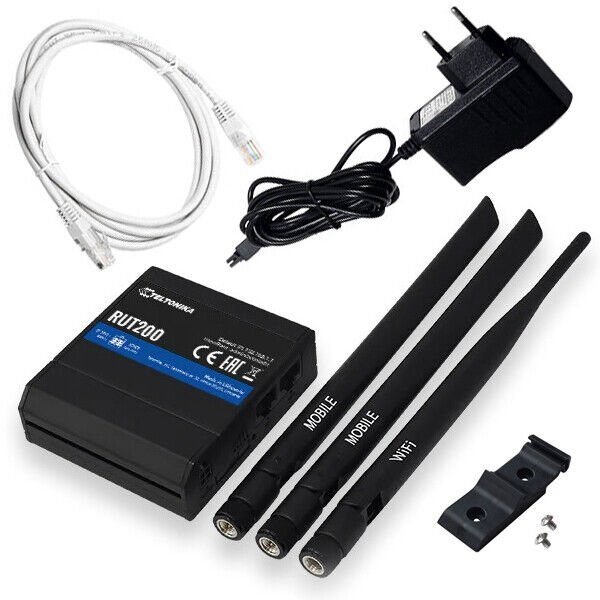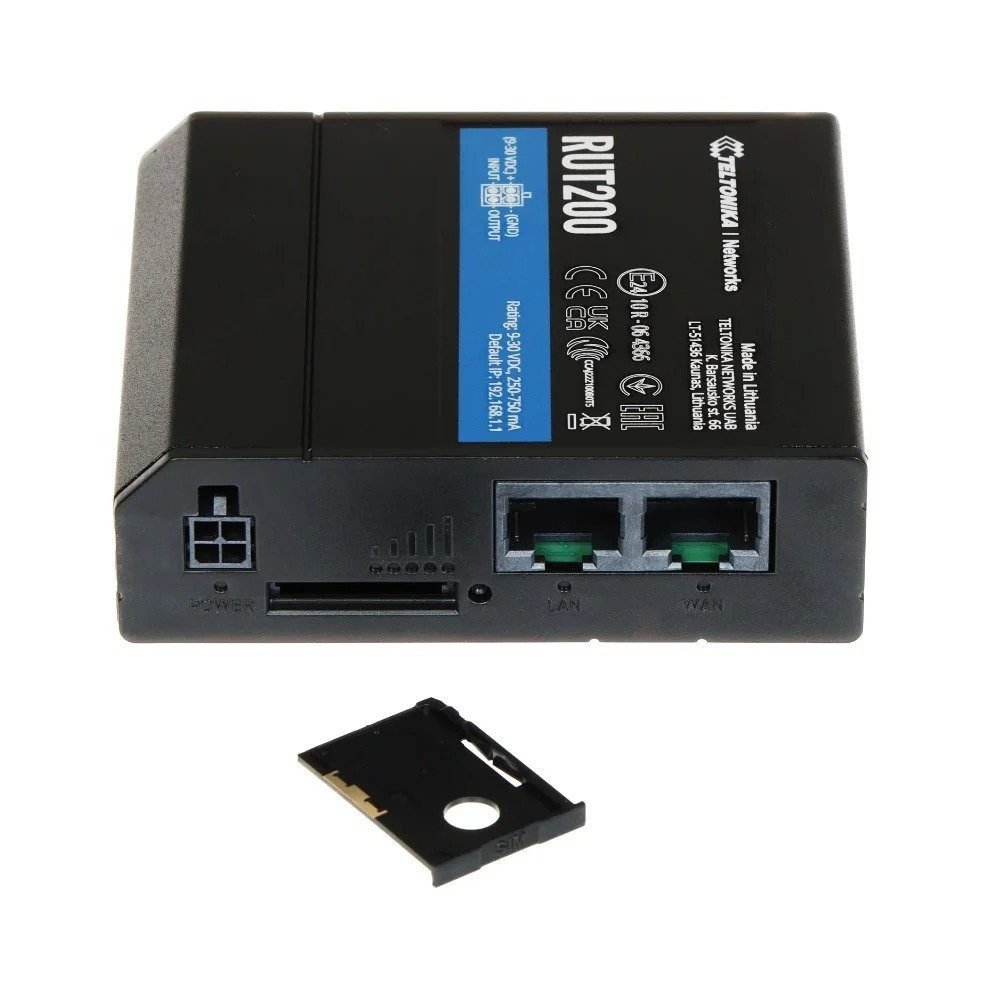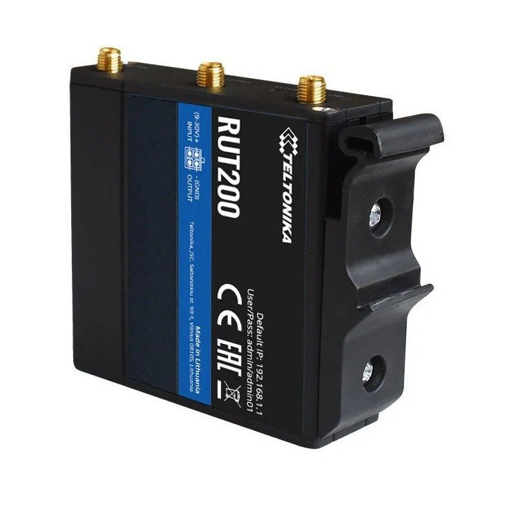- Router Teltonika RUT200 celular grado industrial IP30 compacto que proporciona conectividad confiable y de misión crítica en condiciones rigurosas comunes en sectores como automatización transporte y manufactura.