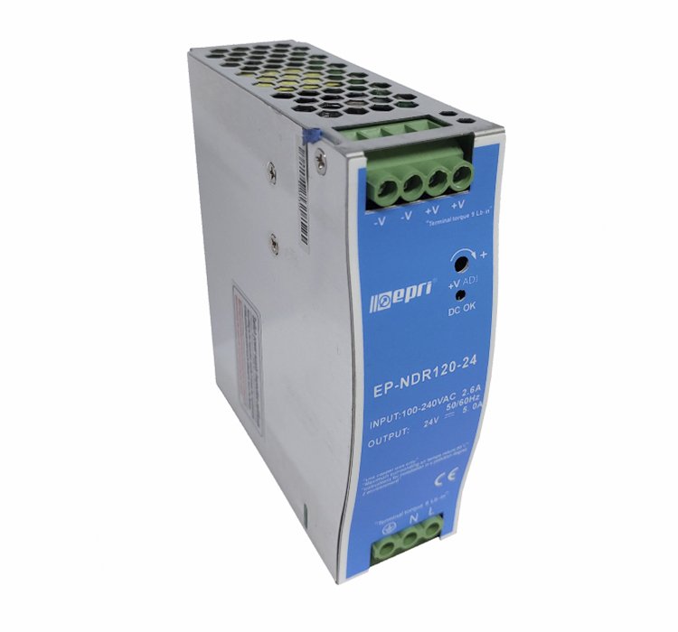 Fuente Industrial Switching para montaje en riel DIN de 120 Vatios, 24 Voltios, 5 Amp.