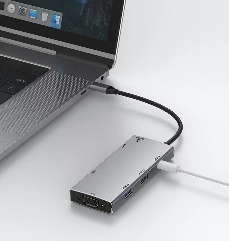• Multipuerto Adaptador Hub Tipo C a HDMI+USB3.0*2+PD+SD+TF+VGA+RJ45 Gigabit – DOCKING STATION