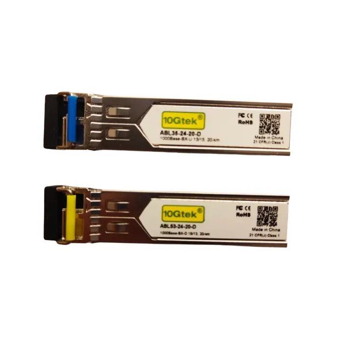 10Gtek ABL53-24-20-D/ABL35-24-20-D is a pair of 1.25Gbps SFP BiDi transceivers, supporting up to 20 km over single LC SMF fiber, following IEEE 802.3ab and SFP MSA 1000Base-LX.