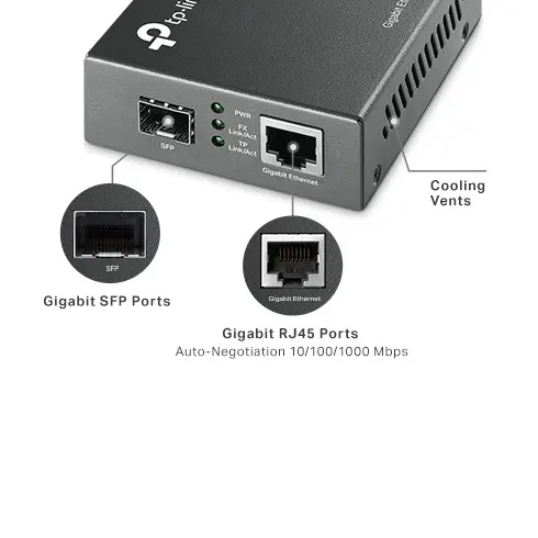 | Ports | 1 puerto Gigabit SFP 1 puerto RJ45 a 1000M (MDI/MDIX automático) |