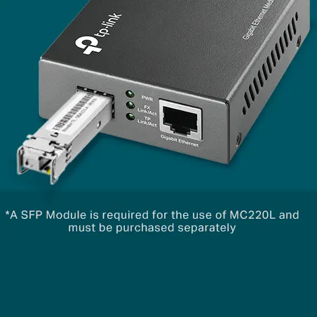 - Otras de las funcionalidades de este módulo incluyen la posibilidad de utilizarse como un dispositivo por sí mismo (sin necesidad de carcasa) o con un chasis de 19″ de TP-LINK. Además, detecta automáticamente el modo MDI/MDI-X para el puerto TX e incluye leds de estado en un panel frontal. El MC220L es capaz de transmitir datos a una distancia de hasta 0,55 kilómetros cuando se utiliza fibra multimodo y hasta 10 kilómetros con fibra monomodo.