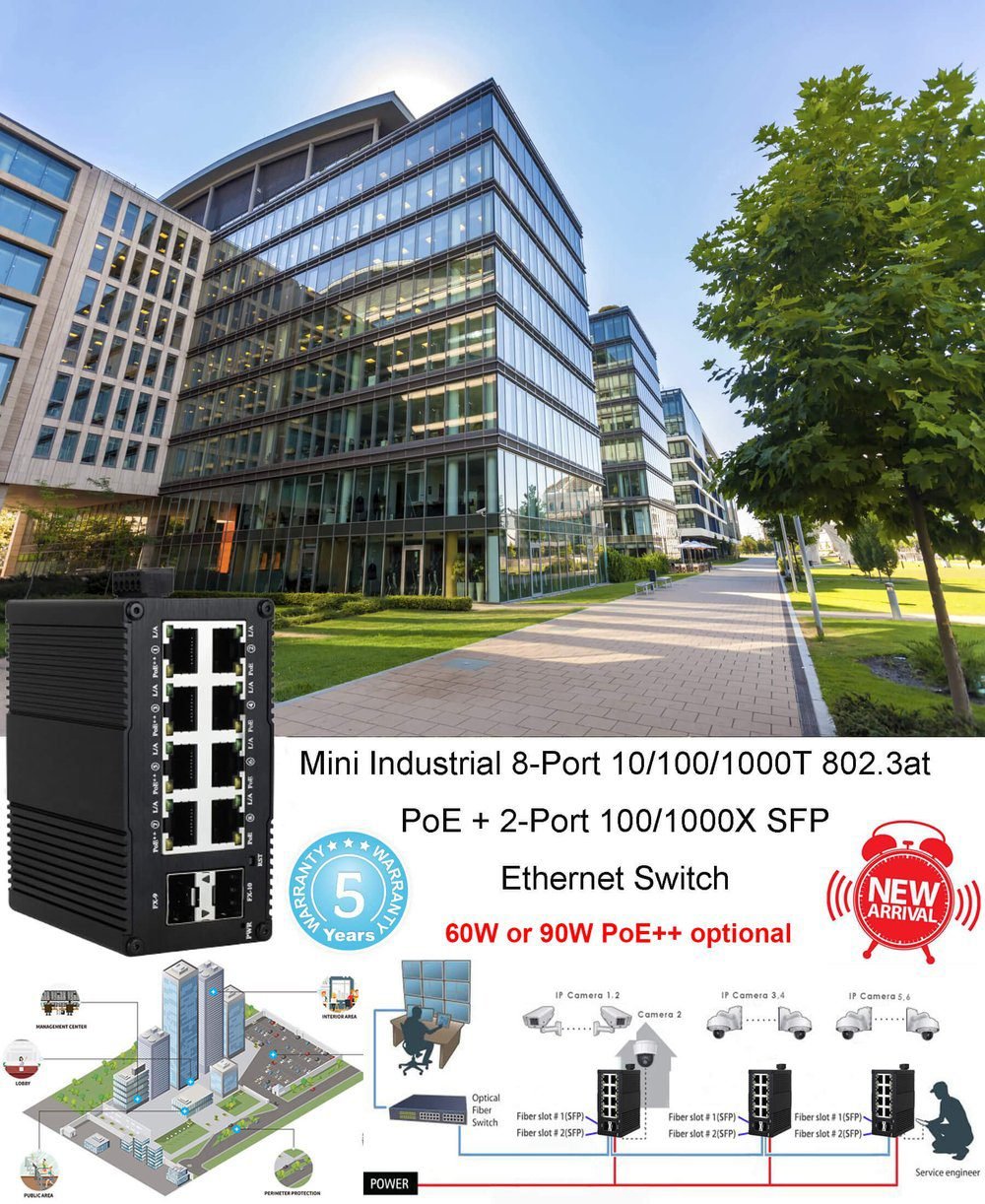 Swicth Industrial 8-Port Gigabit Ethernet 802.3at PoE + 2-Port SFP Gigabit – DIN-Rail