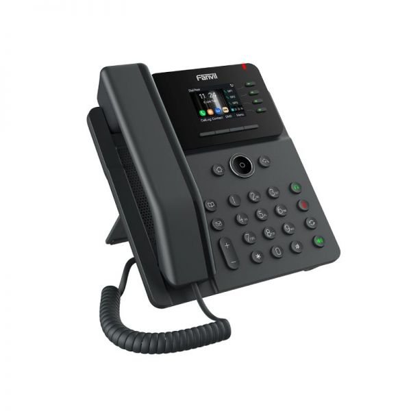 Fanvil V61G es un teléfono IP versátil. Con un diseño sobrio en gris oscuro, este teléfono puede montarse en una pared o colocarse sobre un escritorio gracias a su soporte ajustable.