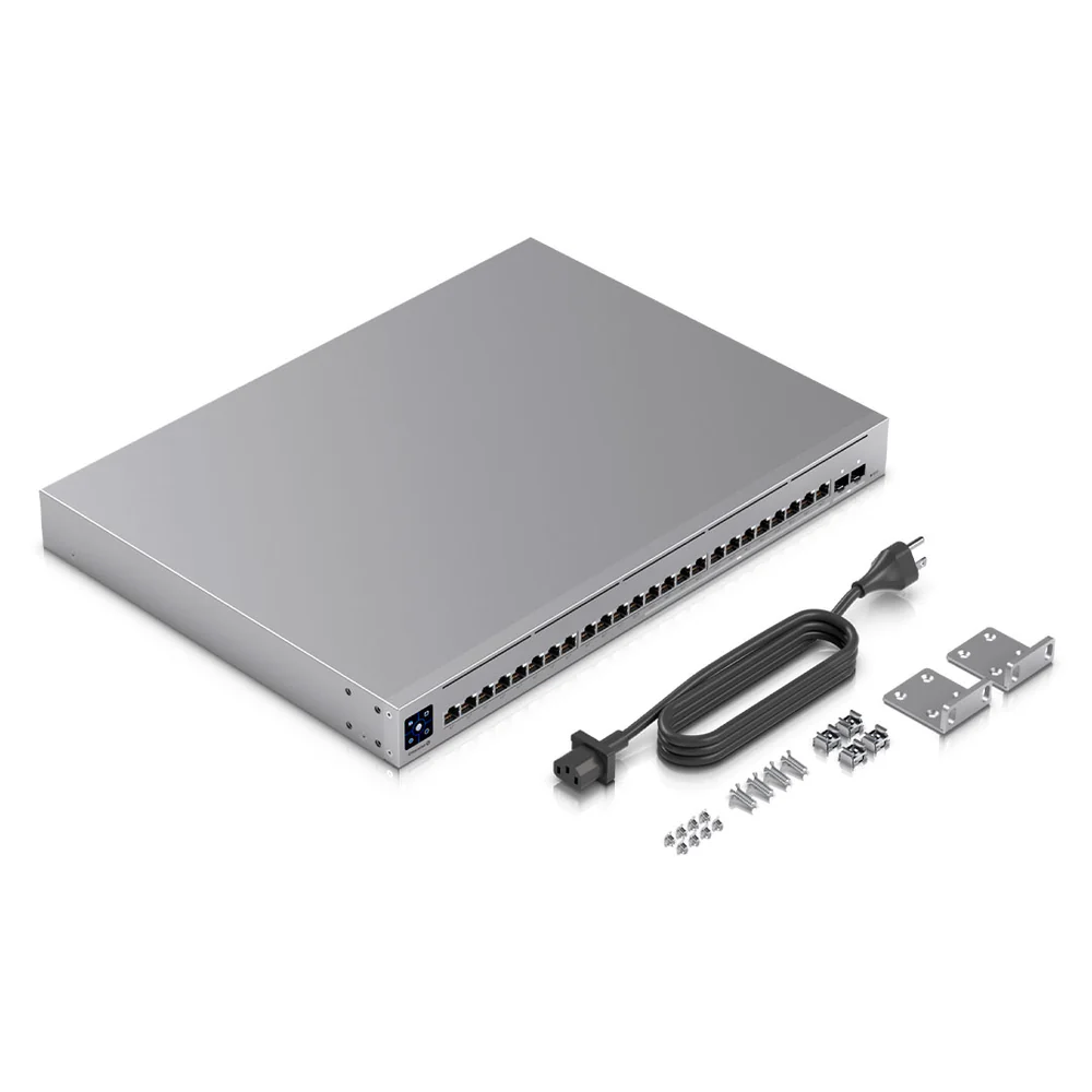 UniFi Switch Empresarial Capa 3 de 24 puertos PoE 802.3af/at (12 puertos 2.5G y 12 puertos 1G) + 2 puertos 1/10G SFP+, 400W, pantalla led.