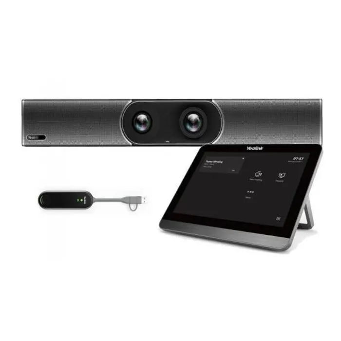 • Este paquete A30 MeetingBar con panel táctil de colaboración CTP18 de Yealink le equipa con una barra de video todo en uno y una pantalla táctil IPS de 8″ para controlarlo desde su mesa de conferencias para una configuración más intuitiva. El A30 cuenta con cámaras duales de 8MP con Qualcomm Snapdragon 845 para imágenes de alta calidad. Un campo de visión de 120° y ajustes impulsados ​​por IA garantizan que todos los participantes permanezcan visibles. Una cámara proporciona una vista panorámica de todo el espacio mientras que la otra realiza funciones de zoom.