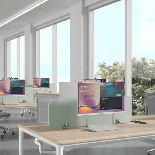 - DeskVision A24 es un dispositivo de colaboración personal con una pantalla táctil de 24 pulgadas. Cuenta con una cámara 4K oculta detrás de la pantalla que aparece automáticamente cuando se usa, así como altavoces integrados.